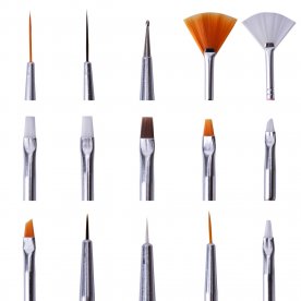 Zestaw składa się z 15 różnorodnych pędzelków, które możesz wykorzystać do nakładania żelu, wykonywania zdobień bądź french'a. Każdy pędzelek jest starannie wykonany z wysokiej jakości włosia, co gwarantuje trwałość, oraz pozwoli utrzymać idealny kształt nawet po wielokrotnym użyciu.